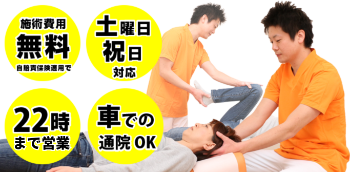 無料でむち打ち施術を受けることができます